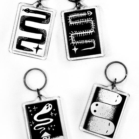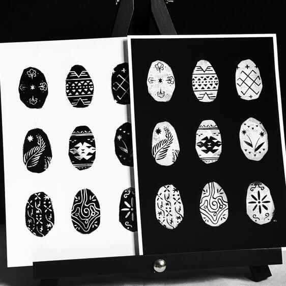 I create monochrome illustrations revolving around nature, my heritage and more obscure, macabre subjects. I sell these on; various sized prints, greeting cards, stickers and wooden pins. The only outsourced product that I sell are wooden pins; they are produced in the UK.