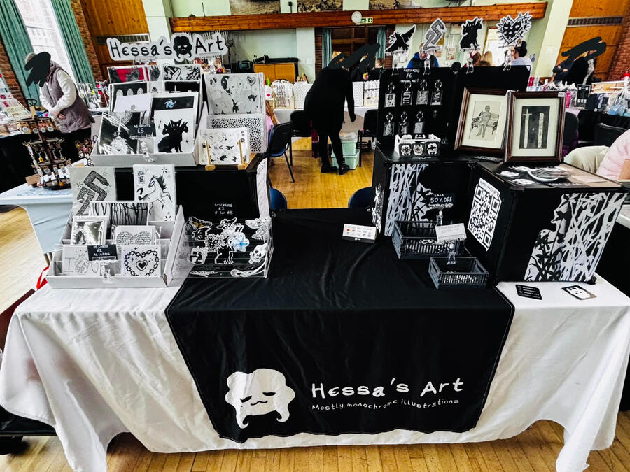 My name is Hessa! I am an artist based in Southampton, Hampshire. I started selling my work in person in April 2024, both at markets and comic conventions.