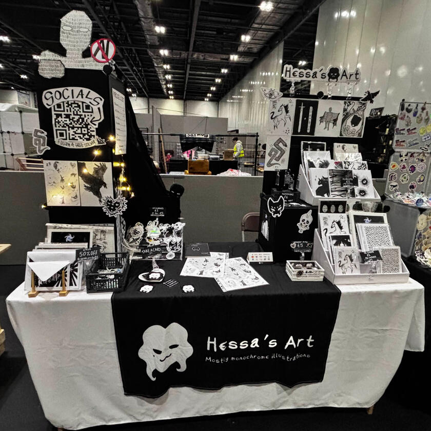 My name is Hessa! I am an artist based in Southampton, Hampshire. I started selling my work in person in April 2024, both at markets and comic conventions.